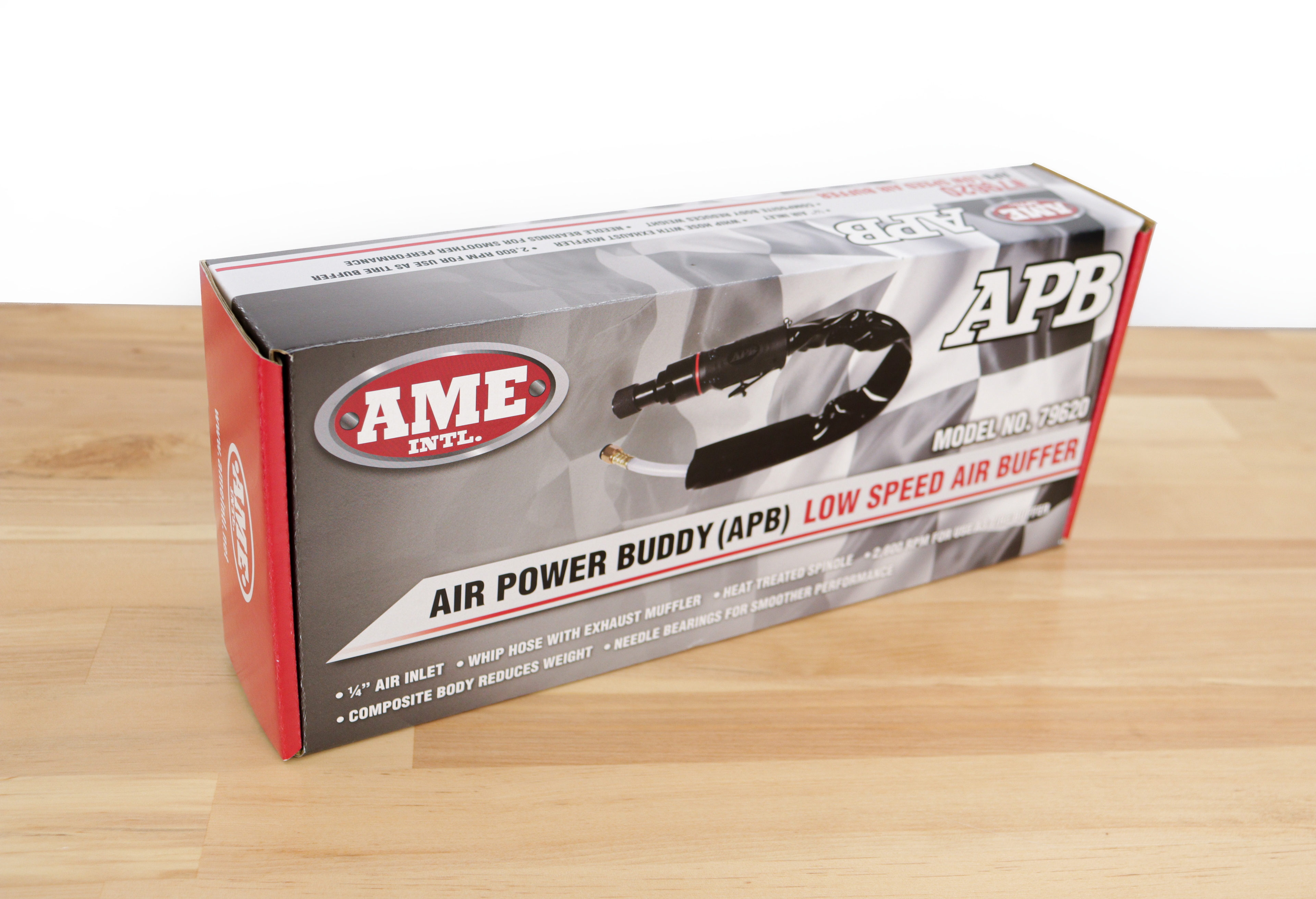 For this project, I created a packaging design for a new product. Considering this particular product would be distributed by the company's vendors, it made it even more pivotal that we emphasized the AME International branding to carry through for clarity and recognition. This was for the company's Air Power Buddy brand of tools, which contains over six different products, making this the perfect template for several packaging designs.